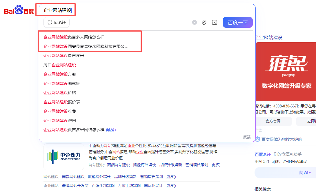 3.品牌背書:你的公司名或業務名反復出現在下拉里,看起來就像行業里比較常見/知名的企業。