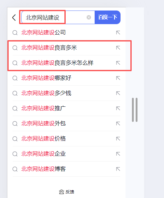 1.優先挑選精準詞:比如“北京網站建設"“這種帶地區+需求的詞,做下拉有價值。